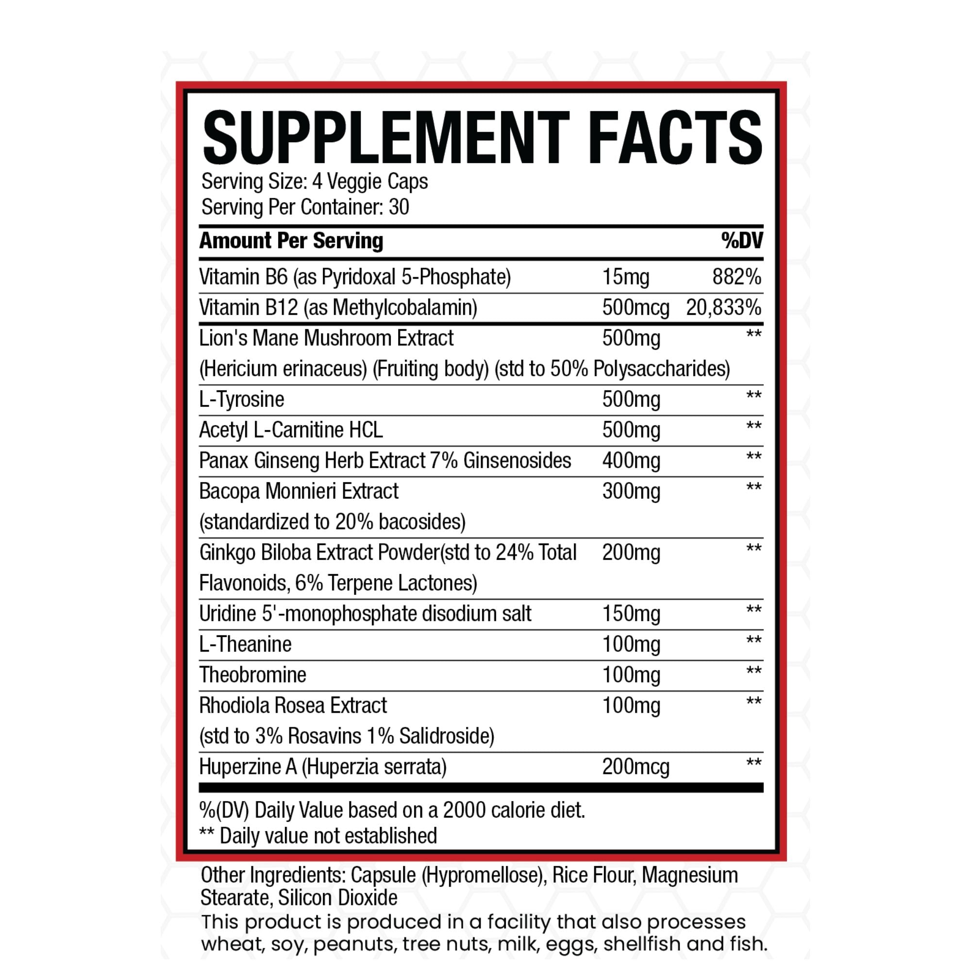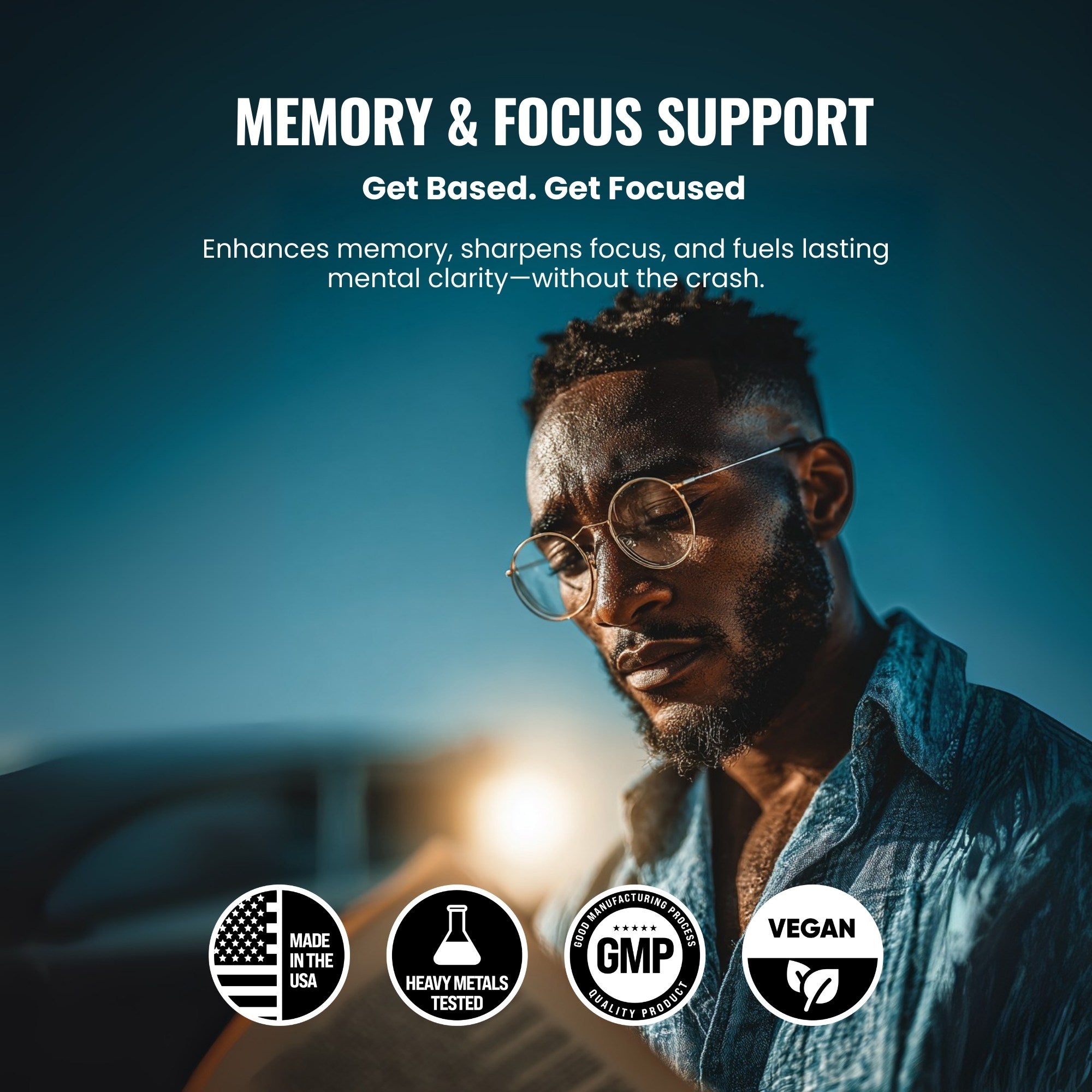 - Enhanced Memory & Recall – Improve learning speed and long-term retention with Bacopa, Ginkgo, and Huperzine A.†